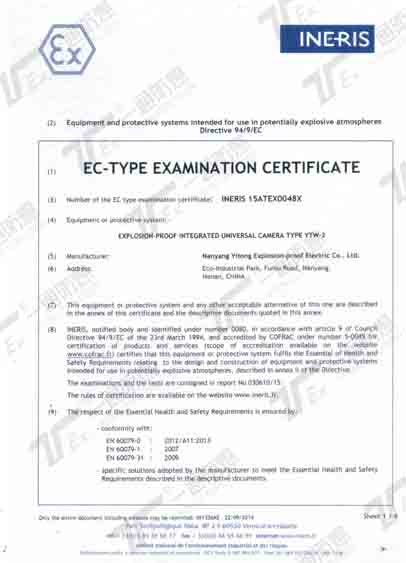 ATEX(歐測國際認(rèn)證)證書