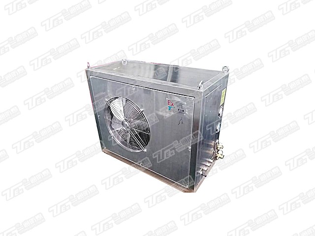 空調(diào)機按照IEC60079-0:2011、IEC60079-1:2014、IEC 60079-2: 2014、IEC60079-11:2011、IEC60079-18:2014、ISO/IEC80079-36:2016、 ISO/IEC80079-37:2016的規(guī)定制成防爆結(jié)構(gòu),主要是由BXK55-20防爆電氣控制柜(Ex db IIB T5 Gb)、BXK55-10防爆電氣控制柜(Ex db IIB T5 Gb)、BRS-5防爆制冷系統(tǒng)(Ex mbibpx IIC T4 Gb)、BGF-150防爆貫流風(fēng)機(Ex db IIB T4 Gb)、BAF4.0防爆軸流風(fēng)機(Ex db IIB T4 Gb)、電氣控制系統(tǒng)及不銹鋼殼體組成;冷凝器采用強制通風(fēng)空氣冷卻方式,冷凝器和蒸發(fā)器銅管與翅片間采用機械漲管方法,減小翅片與管面之間的接觸熱阻,使翅片與換熱管緊密接觸,保證良好的傳熱效果。空調(diào)機采用銅芯橡膠護套軟電纜配線,各防爆電氣單元之間的布線符合IEC 60079-4:2013的規(guī)定,適用于存在或可能存在ⅡA、ⅡB類,T1~T4組可燃性氣體、蒸氣與空氣混合形成的爆炸危險場所。